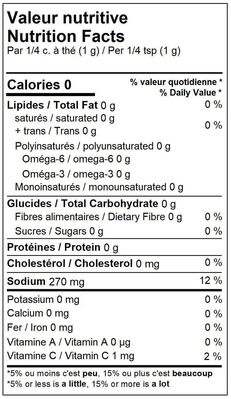 Tart and citrusy, dark and bright, this blend of black sea salt, sunny hibiscus flower and zesty lemon tastes just like a summer night. Use a pinch to finish off lighter foods like white fish or creamy burrata, or sprinkled over a plate of seasonal veg for a pop of flavour. For plating and presentation, it adds dramatic contrast to your dishes due to its deep, smoky colour. If you’re searching for a luxurious, gourmet finishing salt, this luscious option is sure to elevate any culinary experience in a remarkable way.