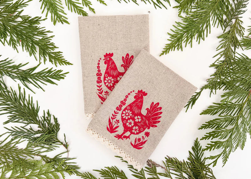 Chicken Linen Napkin Set of Two - Your Green Kitchen