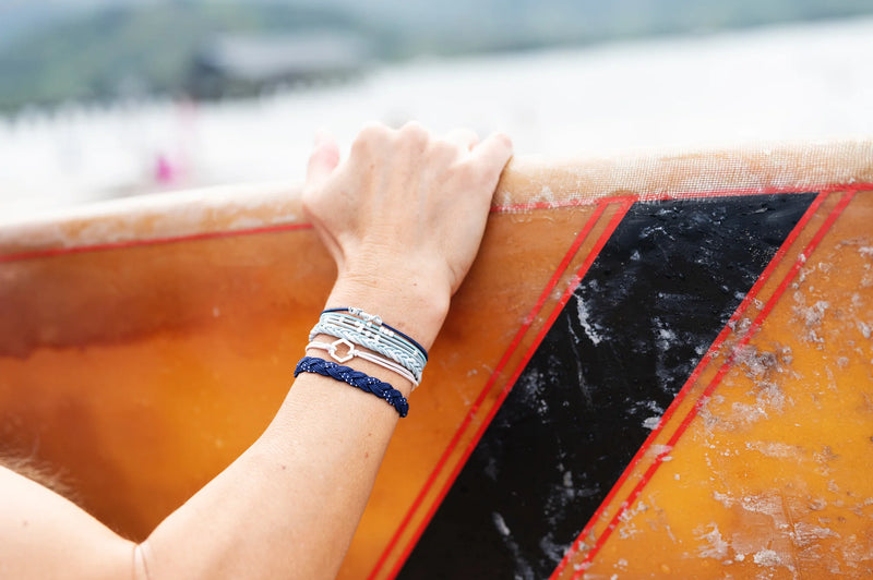 Our DREAM set includes five bracelets that doubles as hair ties in soothing neutral and blue tones with just a hint of shimmery silver. Everything about this set says breathe deep and dream big!